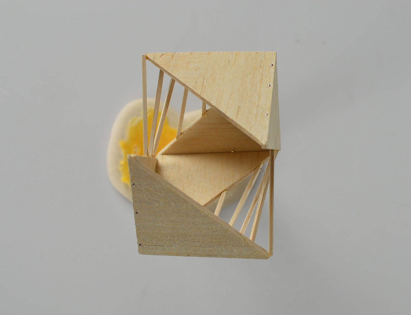 This abstract sculpture made from balsa wood shows repetition in line and shape. Symmetry is found throughout the structure while an organic base holds the piece together. Sparking the unity between symmetry and repetition with asymmetry and abstract.
